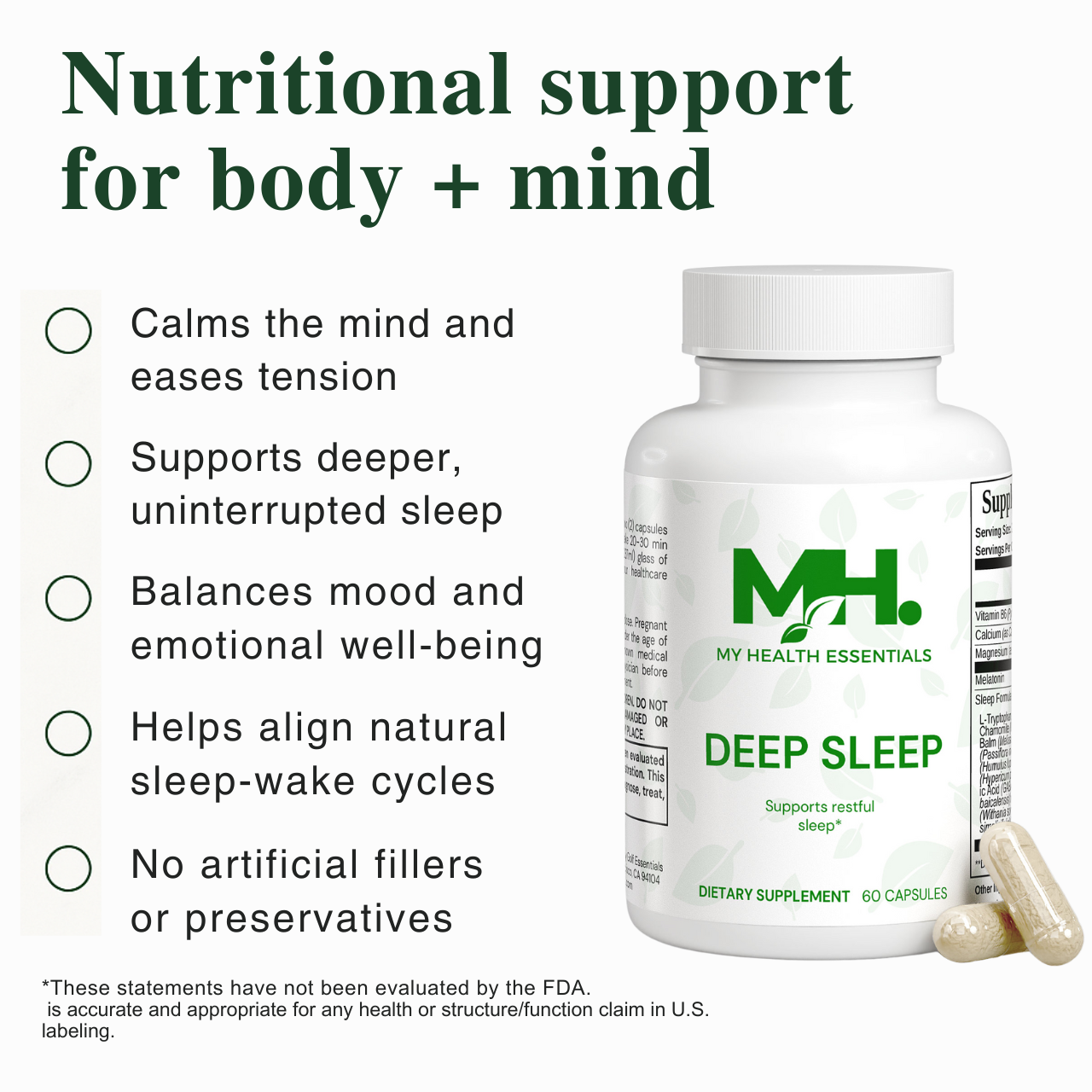 Ideal for those managing occasional sleeplessness or seeking a consistent, natural way to support deep relaxation, Deep Sleep integrates easily into your nightly routine without causing next-day drowsiness.