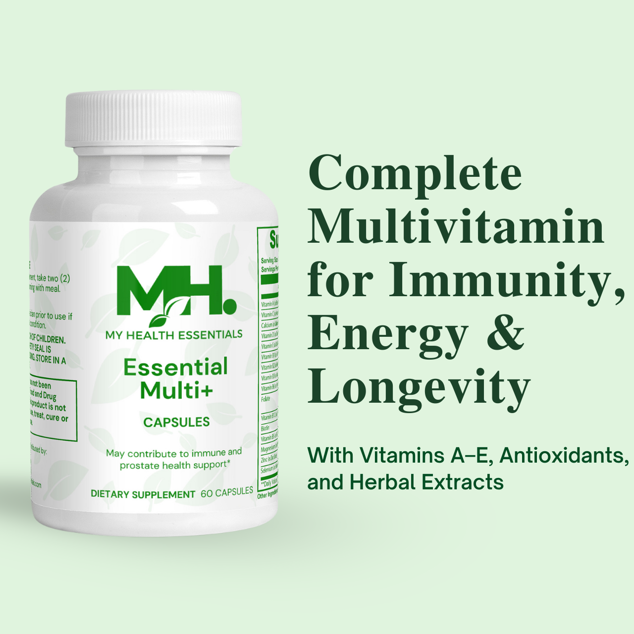 - 🟢 Essential Multi+: 2 capsules in the morning with a meal for all-day nutritional support