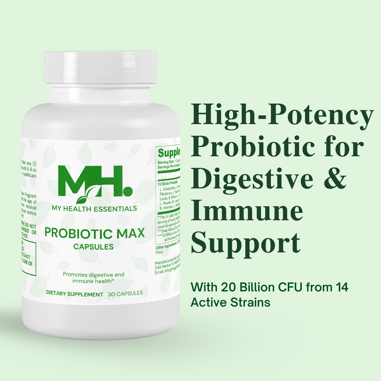 - 🟢 Probiotic Max: 1 capsule daily with food to support gut balance and immune strength