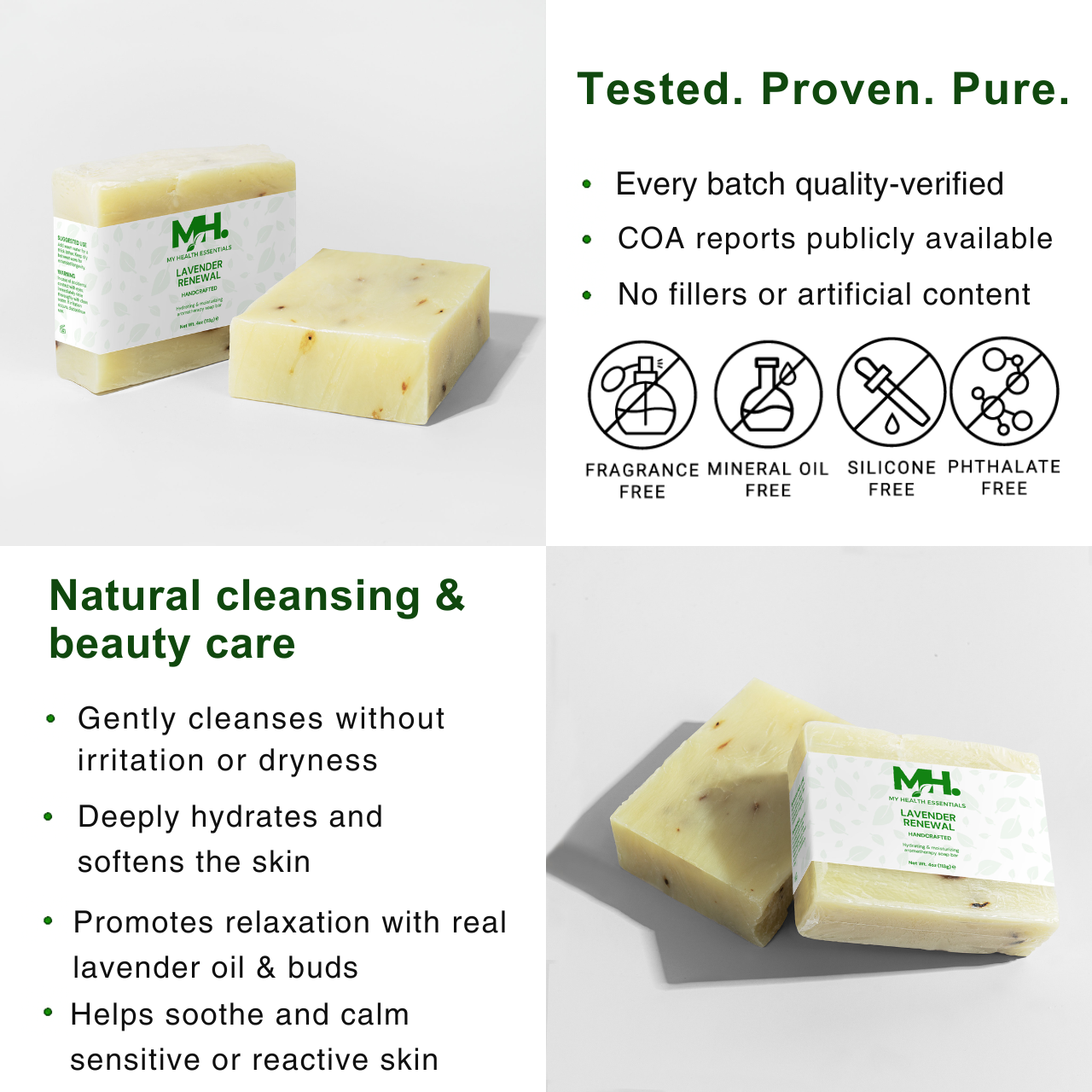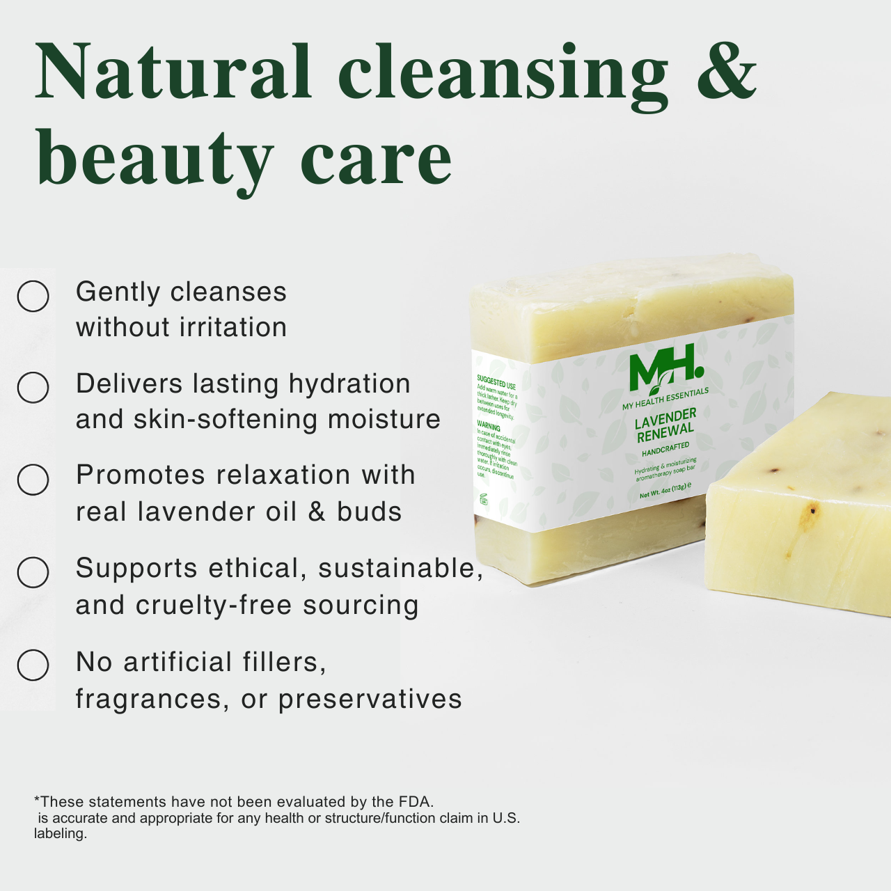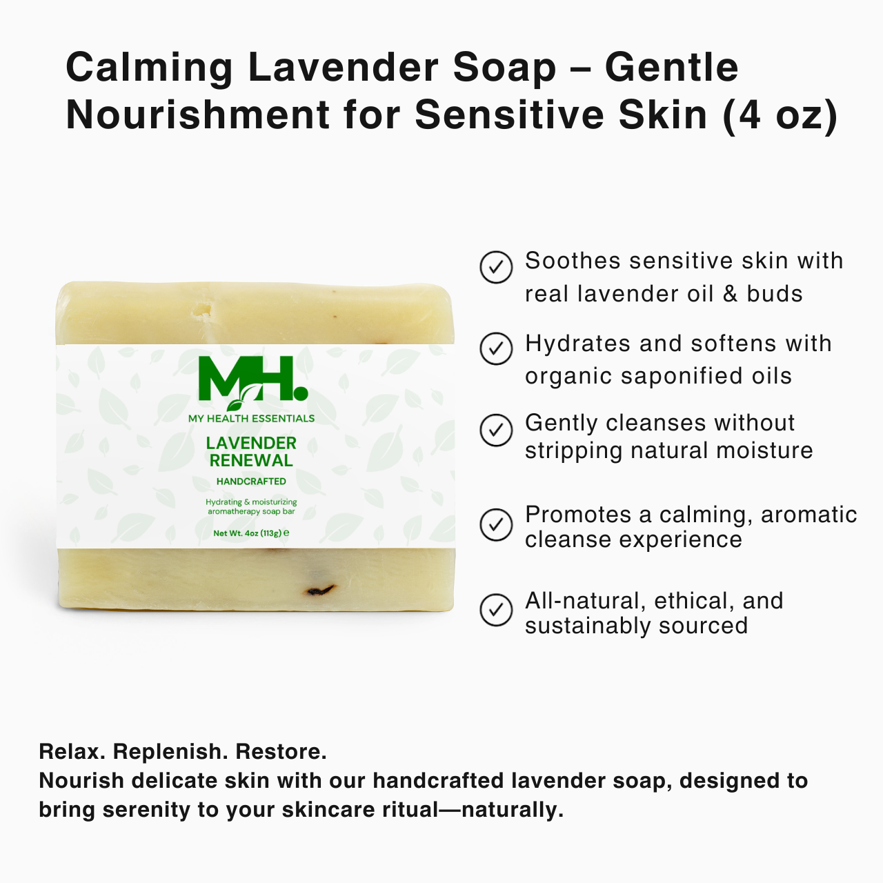 • Natural Lavender Tranquility – Rich in lavender oil and flower buds, it eases stress and calms the senses with every use.